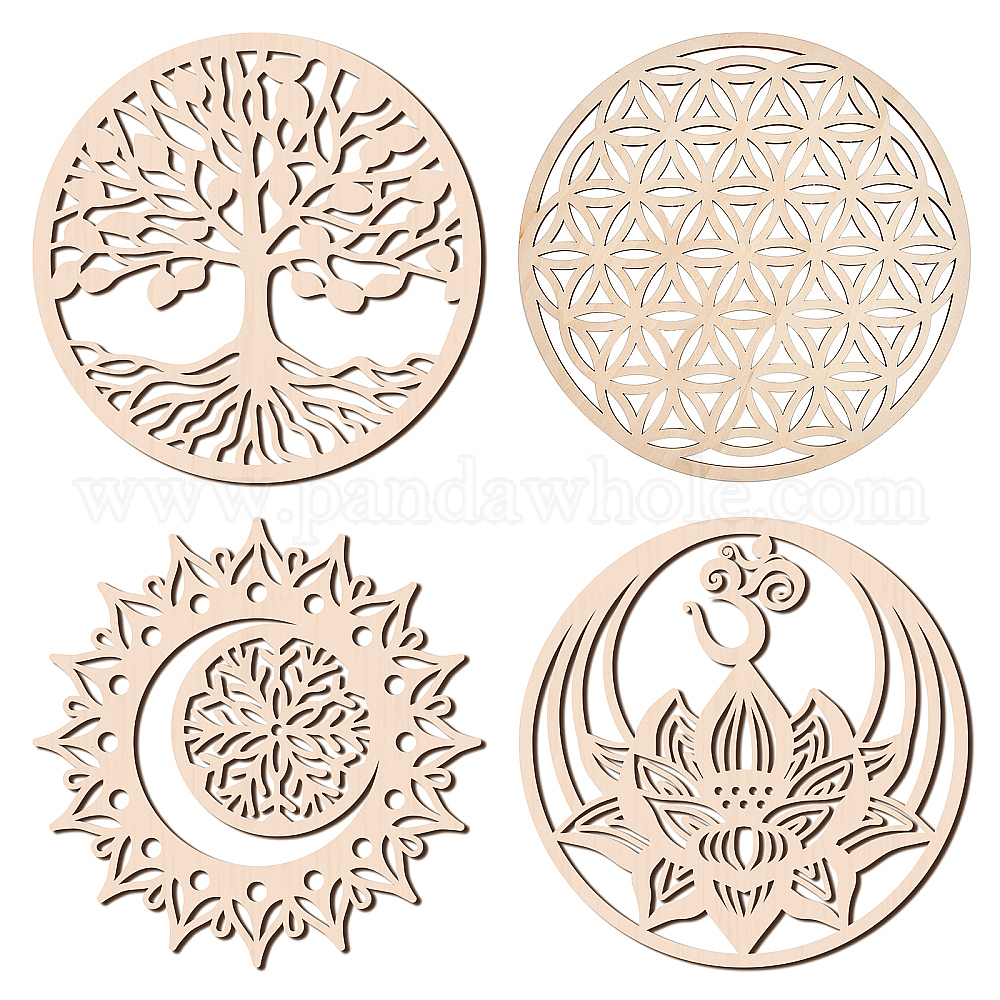 4шт 4 стили лазерная резка деревянная настенная скульптура, тор стены искусства, символ медитации домашнего декора, йога висит произведение искусства, разнообразные