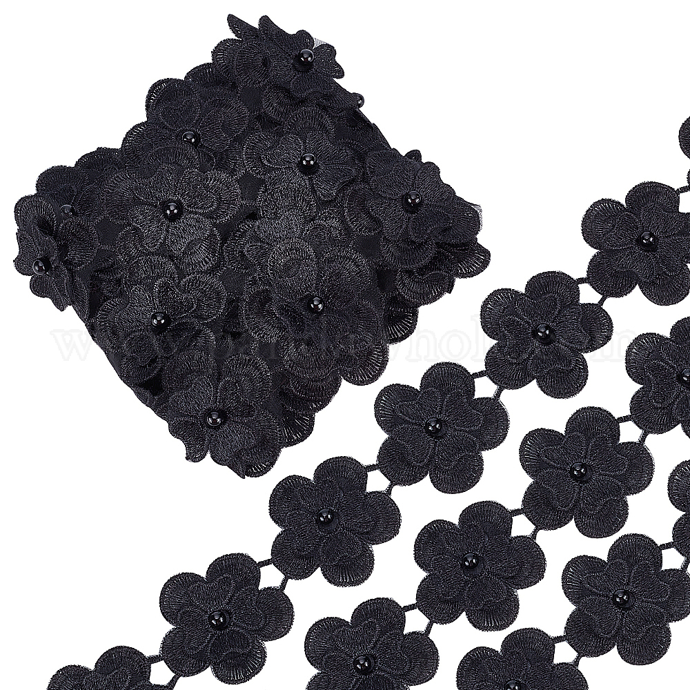 • Черный Полиэфирная лента, с бисером, цветок, чёрные, 1-7/8 дюйм (49 мм)