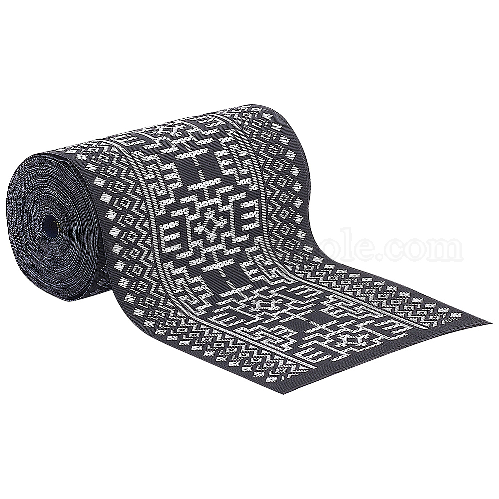 Полиэфирная лента, жаккардовая лента, для упаковки подарков, оформление партии, чёрные, плоский с ромбами/цветочным узором