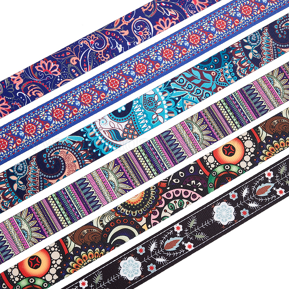 12 ярды 6 узоры двухсторонняя полиэстеровая лента в этническом стиле, жаккардовая лента, тирольская лента, плоский, красочный, цветочный и круглый и полосатый узор