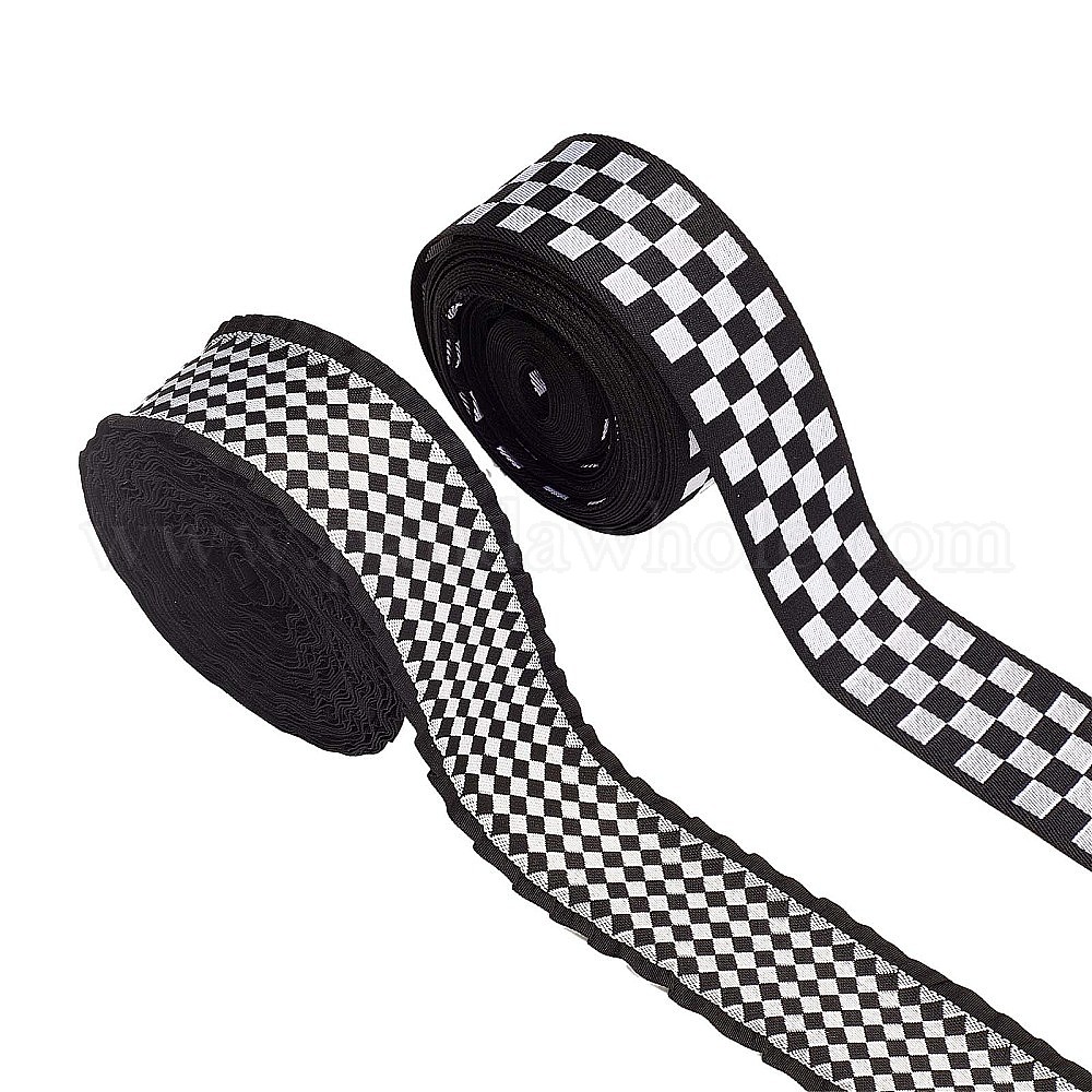 20 ярды 2 стили полиэфирные ленты, жаккардовая лента, тирольская лента, с клетчатой рисунком, аксессуары для одежды, белые