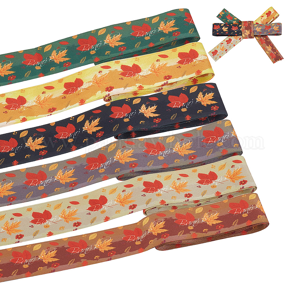 6 ярдов 6 цветная осенняя двухсторонняя полиэстеровая лента с принтом, кленовый лист