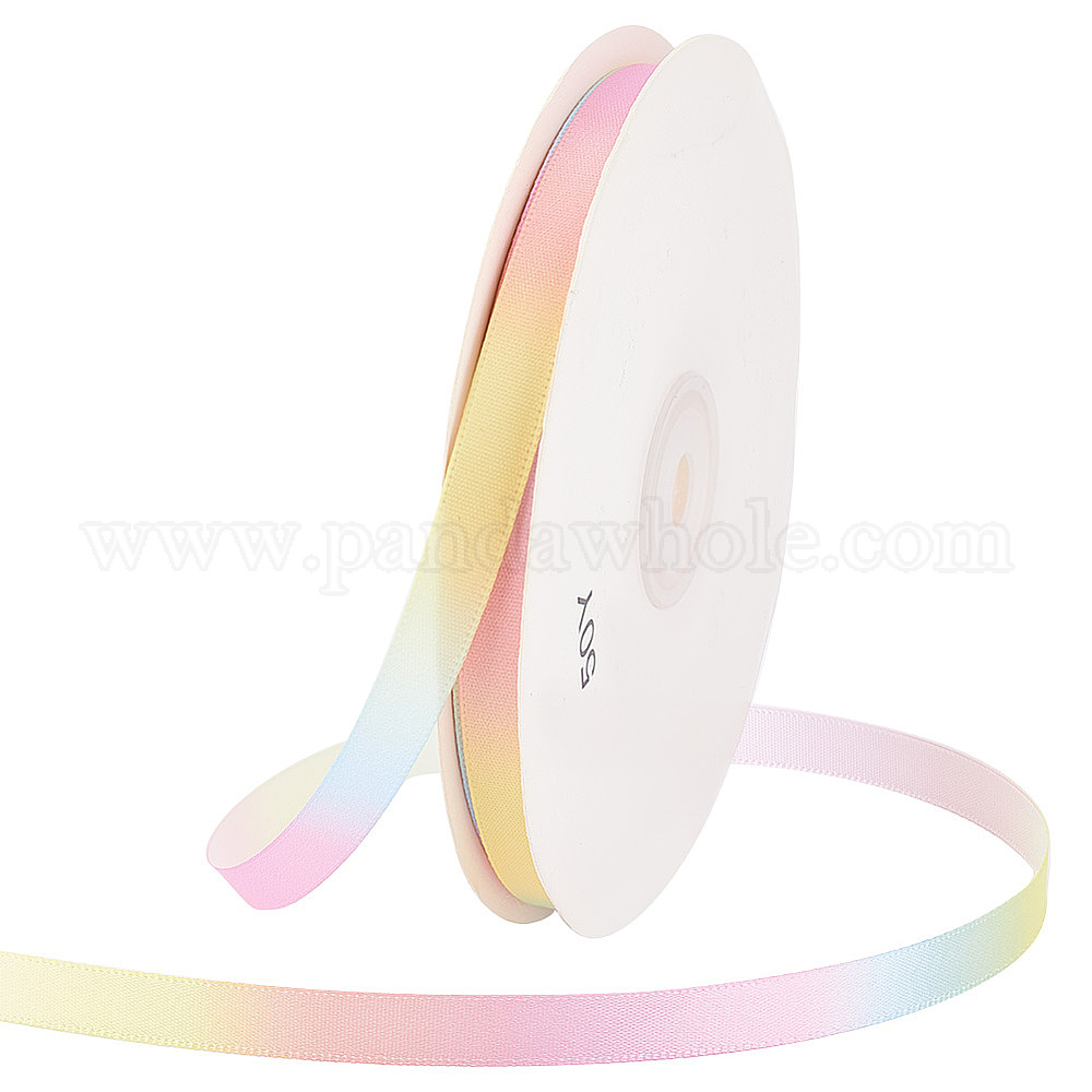 • Разноцветный 50 полиэфирная лента градиентного цвета в ярдах, плоская лента цвета радуги, для ювелирных изделий, ремесленное производство, красочный, 3/8 дюйм (10 мм)