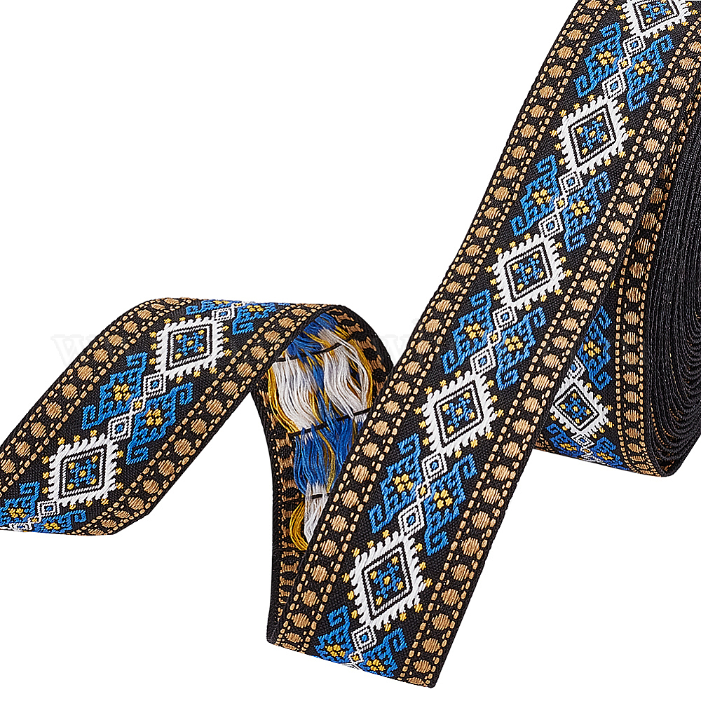 Этническая вышивка полиэстер плоские ленты, жаккардовая лента с узором в виде ромбов