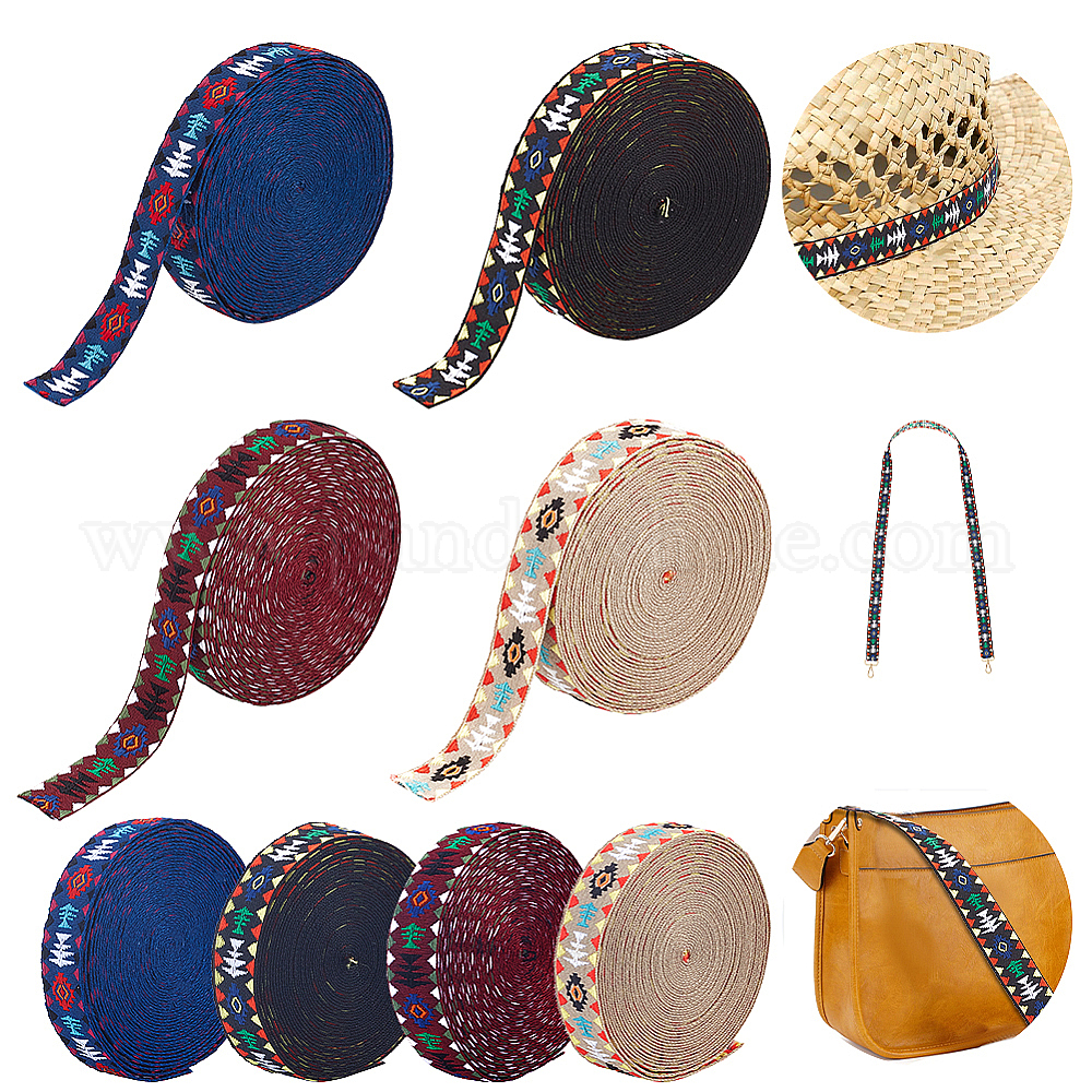 20 ярды 4 цвета плоские вышитые полиэстеровые ленты в этническом стиле, жаккардовая лента, тирольская лента, аксессуары для одежды