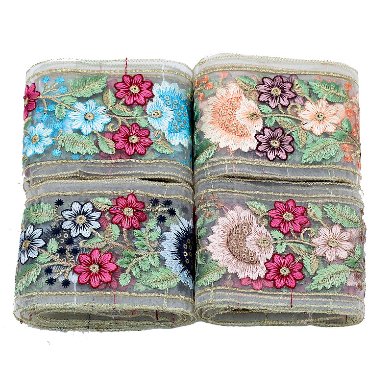 10 лента из полиэстера с вышивкой и цветком, для упаковки свадебных подарков своими руками