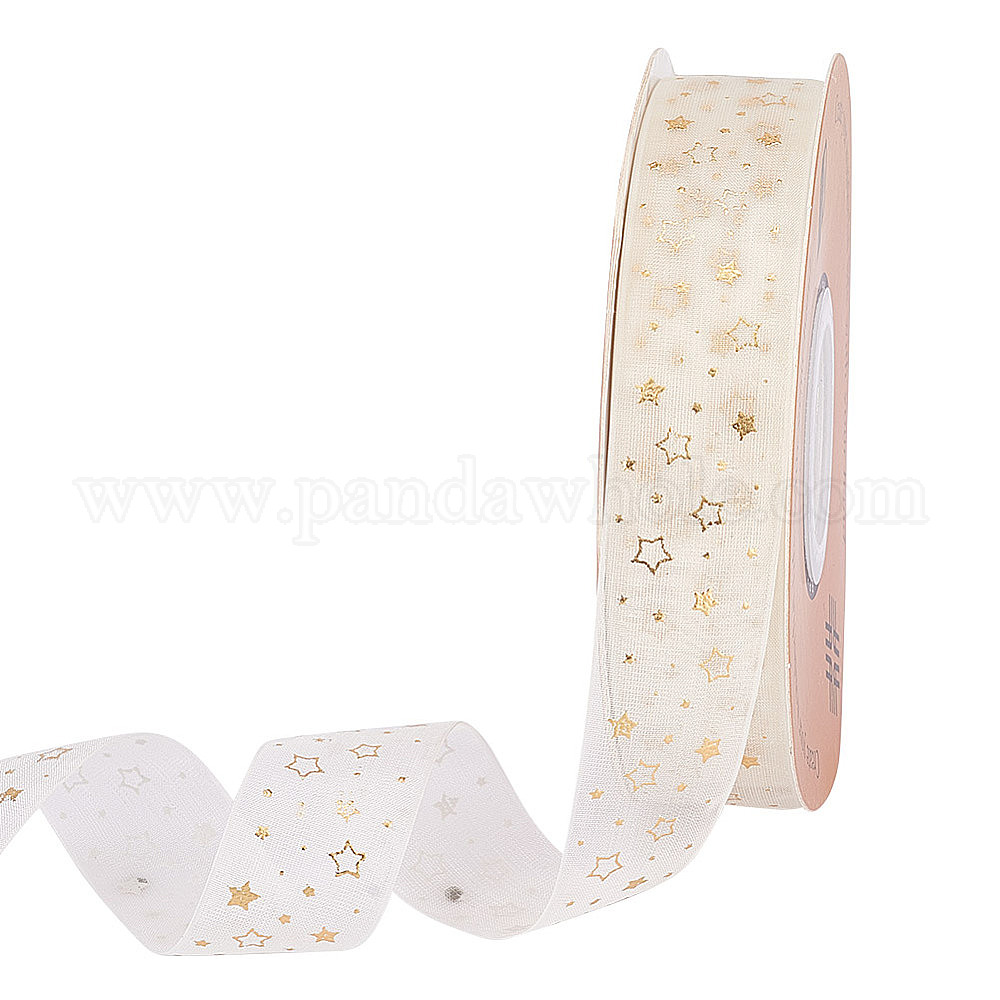 • Золотистый 20 ярдов лент из полиэстера и шифона с горячим тиснением в виде звезды, для упаковки подарков, золотые, 1 дюйм (25 мм)