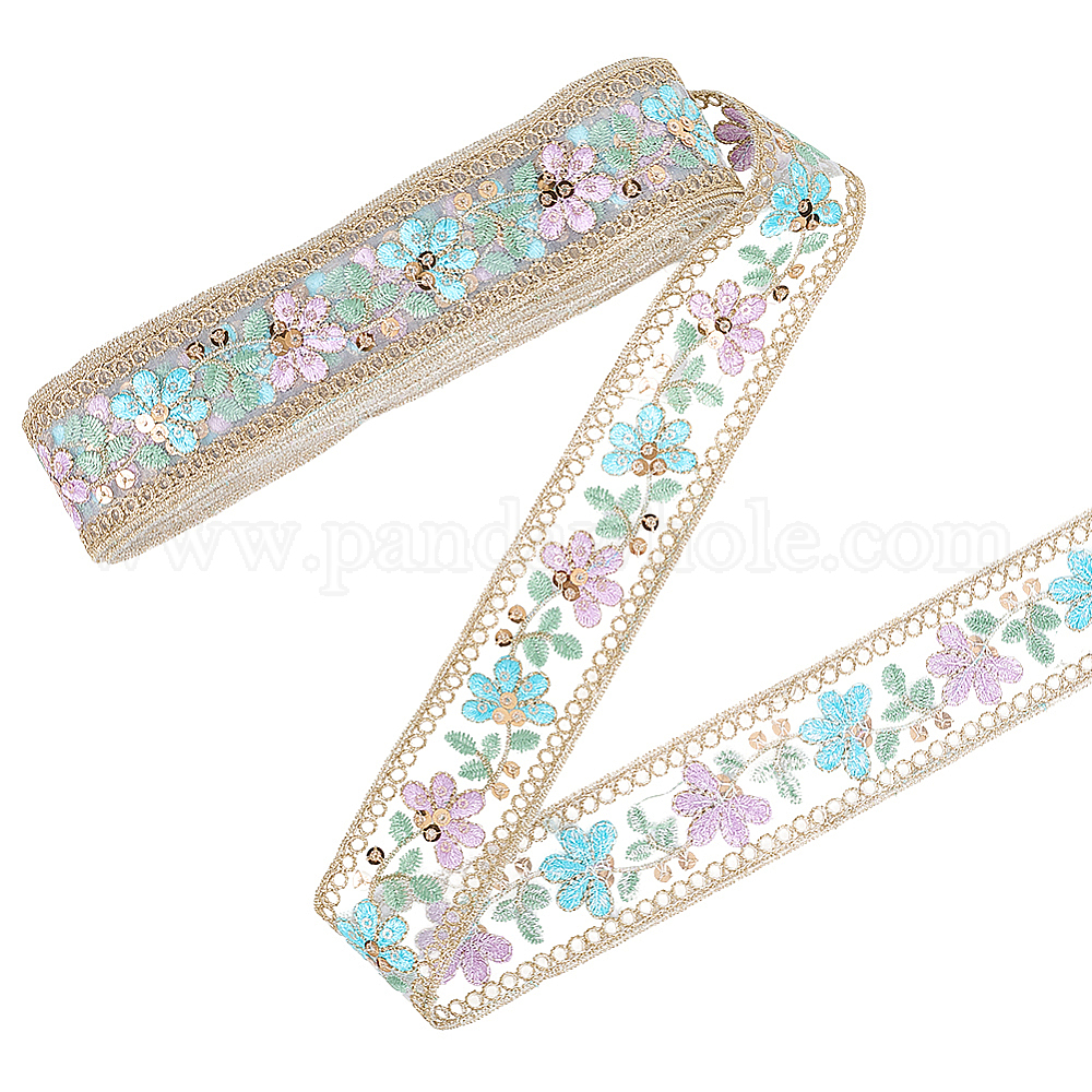 Этническая полиэфирная лента, с блестками, цветочным узором