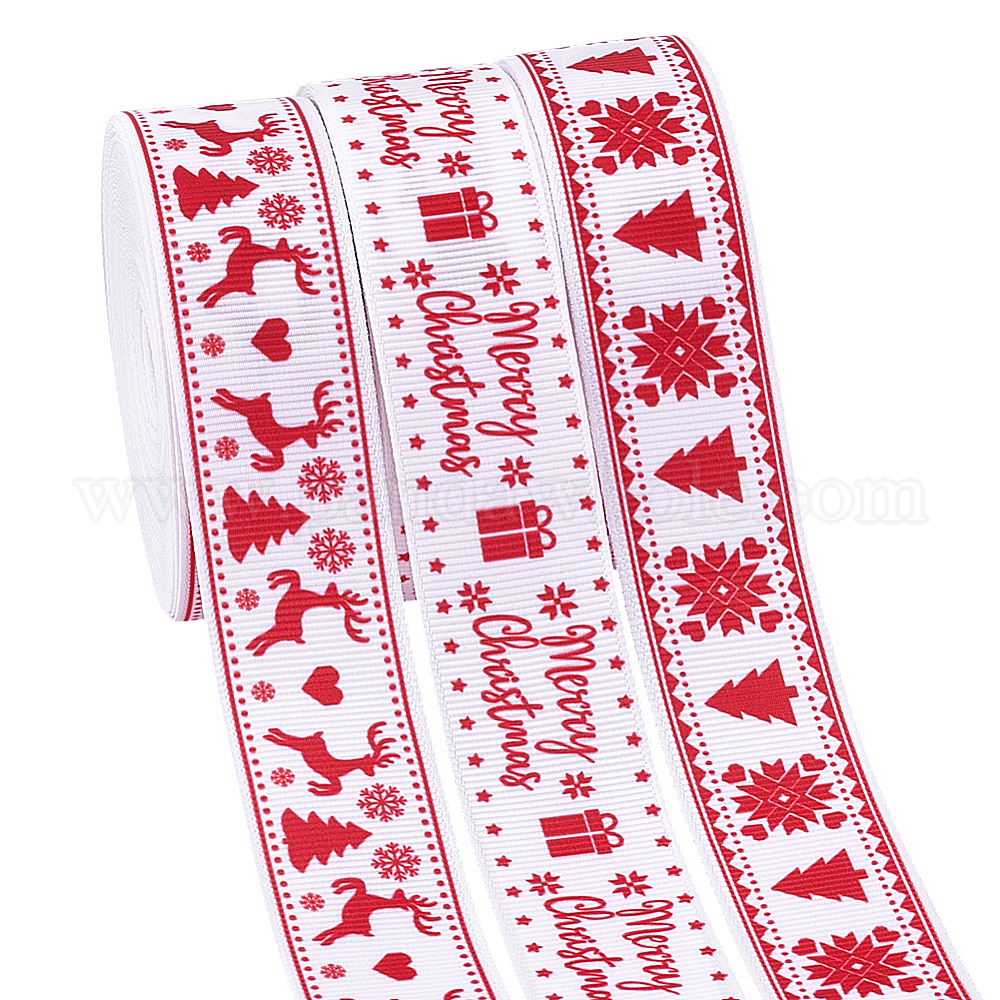 3 рулоны 3 стили полиэфирной ленты, лента с узором на рождественскую тему, для подарка украшения