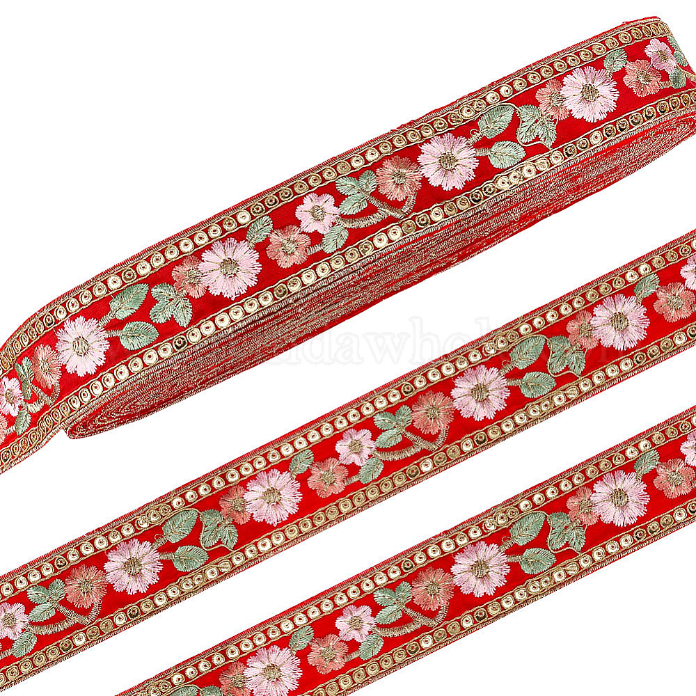 Этническая полиэфирная лента, с блестками, цветочным узором