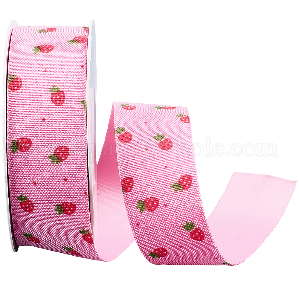 1 рулон односторонних полиэстеровых лент с принтом в виде клубники/цветков, для изготовления аксессуаров для бантиков для волос, подарочная упаковка