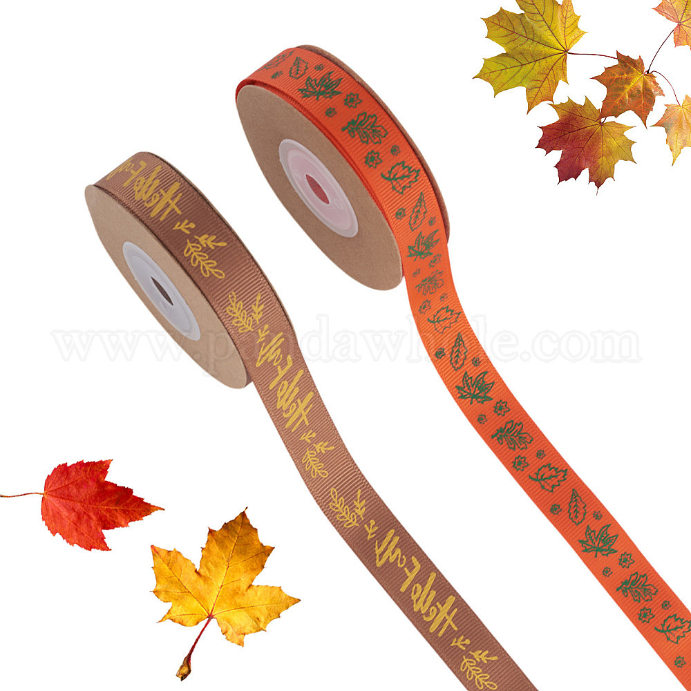 2 рулоны 2 стили, тематика Дня благодарения, полиэстеровая лента, для упаковки подарков