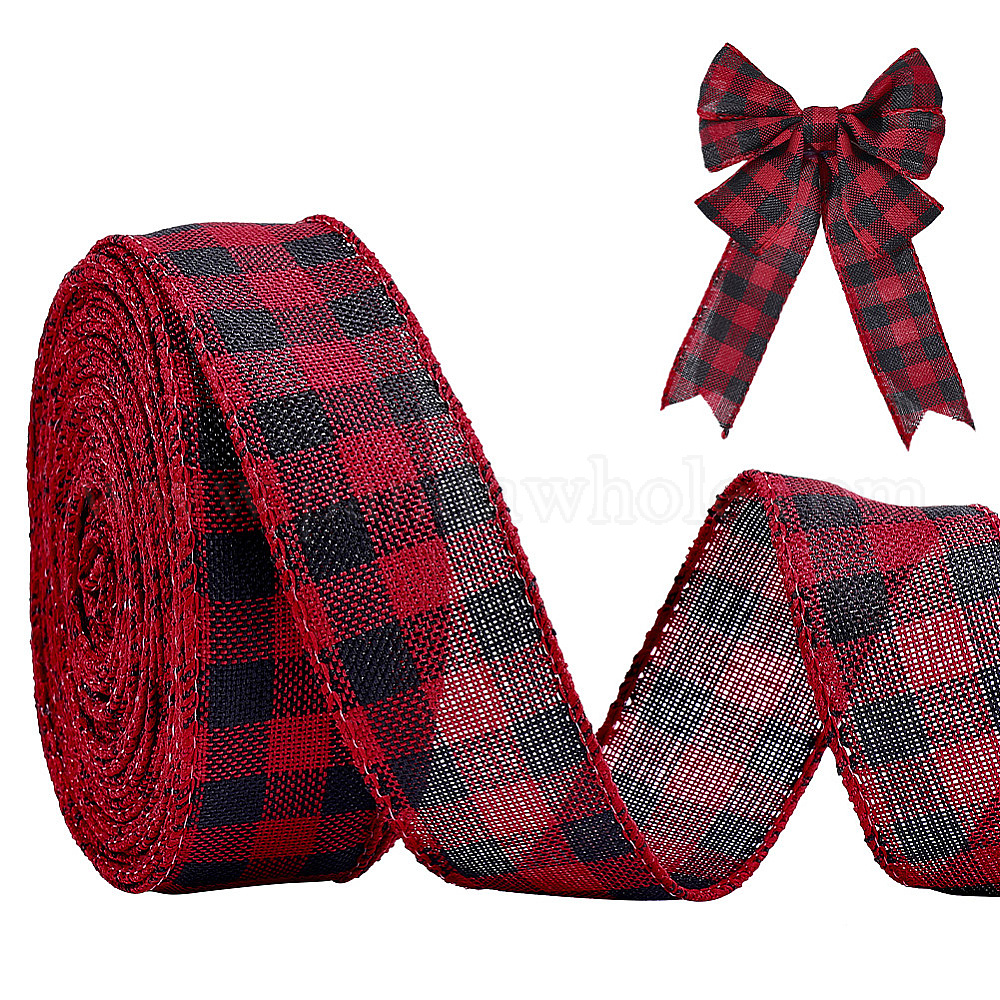 1 рулонная полиэфирная лента, шотландка шаблон, для рождественской подарочной упаковки