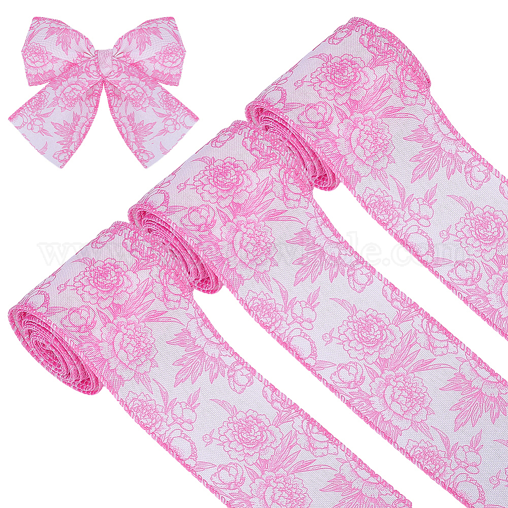 Лента из искусственной ткани из полиэстера, цветочным узором, плоский