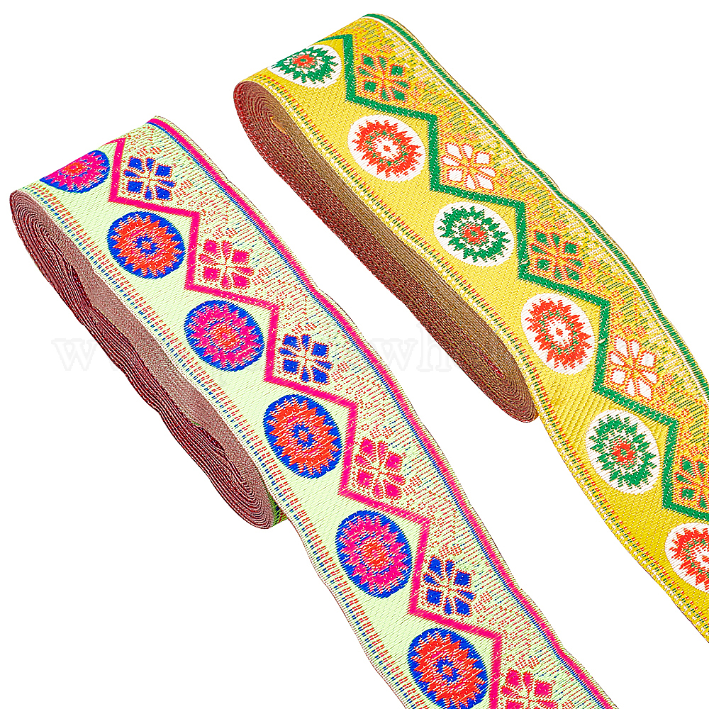 2рулоны 2цвета вышивальные полиэстеровые ленты, жаккардовая лента, аксессуары для одежды, цветочный узор