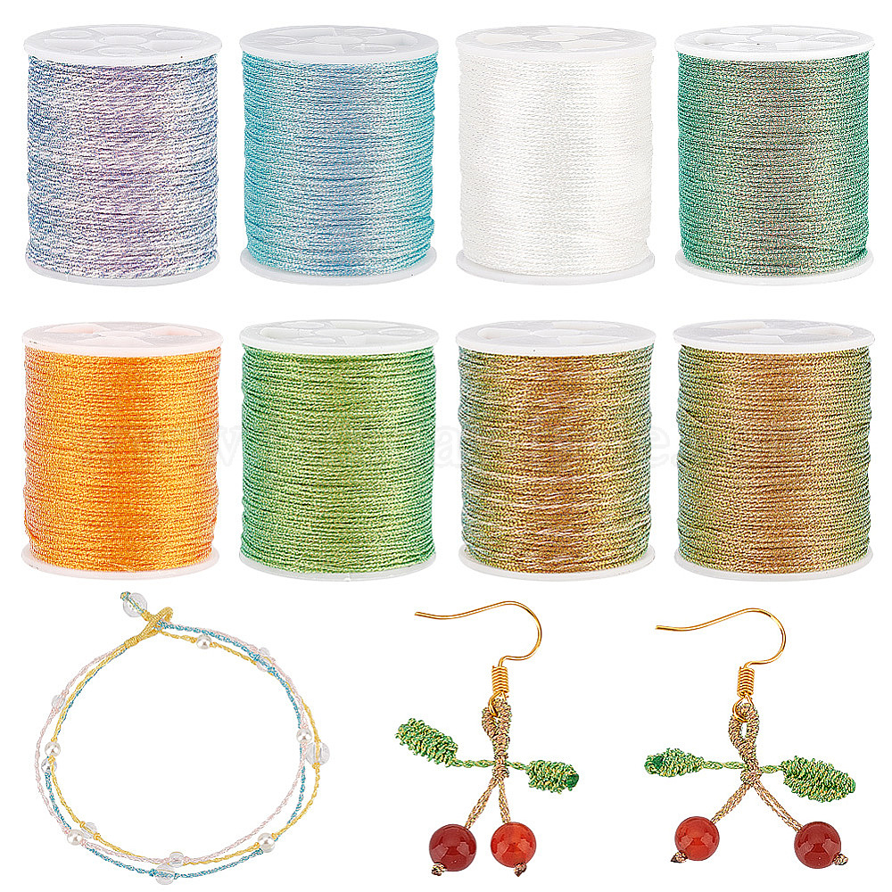 8 рулоны 8 цвета полиэфирные швейные нитки, 6-многослойный шнур из полиэстера для изготовления украшений (02K5MM)