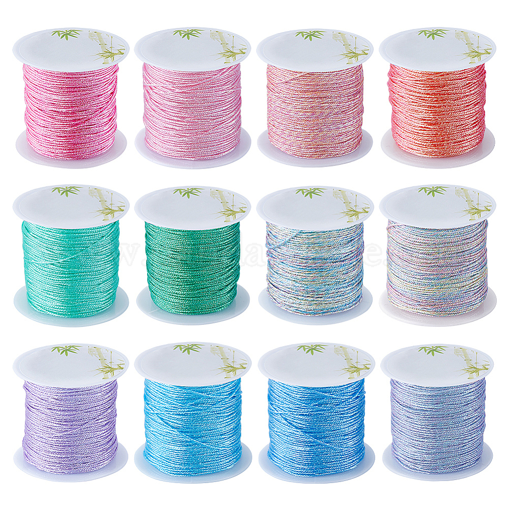 12 рулоны 12 цвета 12-слойная полиэфирная нить, китайский вязать шнур, для изготовления плетеного браслета, ожерелья