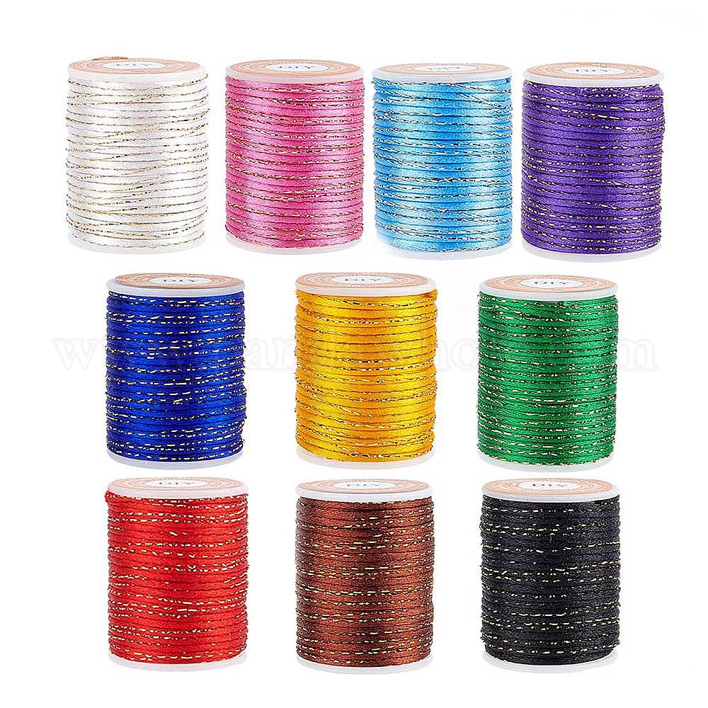 • (52) Непрозрачная лаванда Полиэфирного корда, С золотым металлическим шнуром, китайский вязать шнур, разноцветные, 1.5 мм, около 4 м / рулон, 10 рулонов / набор