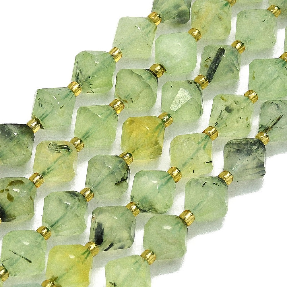 Бусины из натурального пренита, граненые, двухконусные