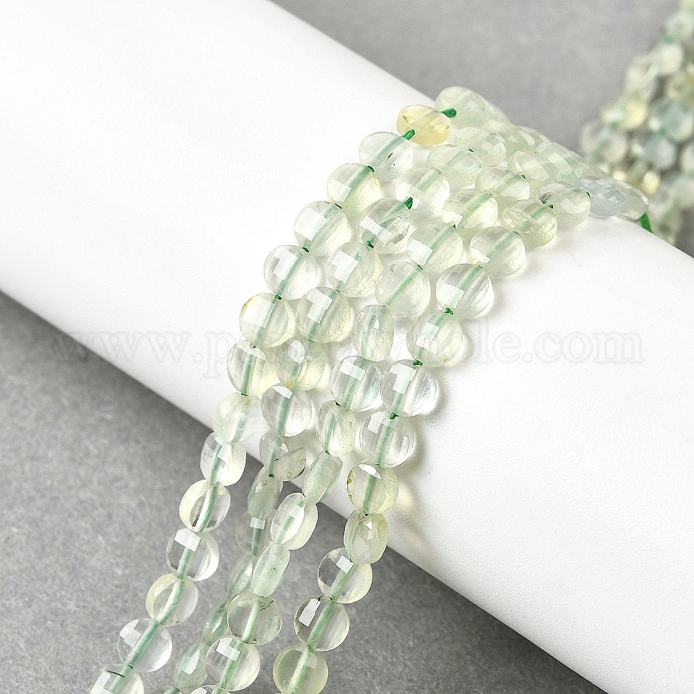 Природные пренит нитей бисера, граненый квадратный разрез, плоско-круглые