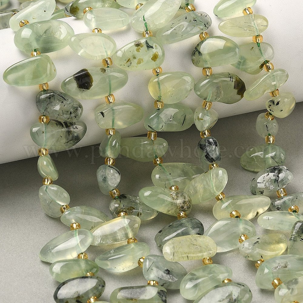 • Пренит Природные пренит нитей бисера, слеза, Топ пробуренной, с бисером, 10~28x8~12x4~8 мм, отверстие : 0.9 мм, около 42~44 шт / нитка, 15.16''~15.55'' (38.5~39.5 см)