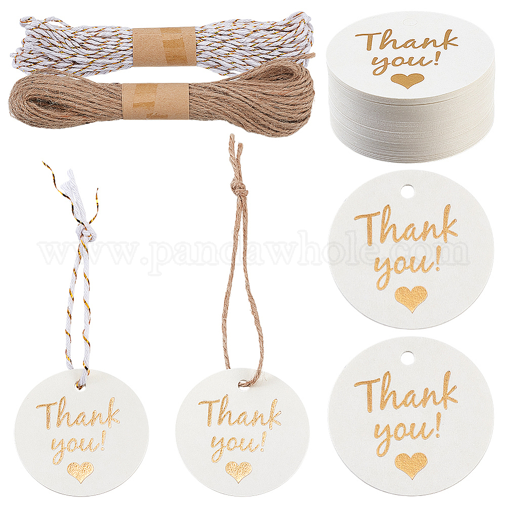 • Плоский Круглый 120 листы бумаги, поздравительные открытки с благодарностью, 2 связки 2 цвета джутового шнура, плоско-круглые, 45.5x0.5 мм
