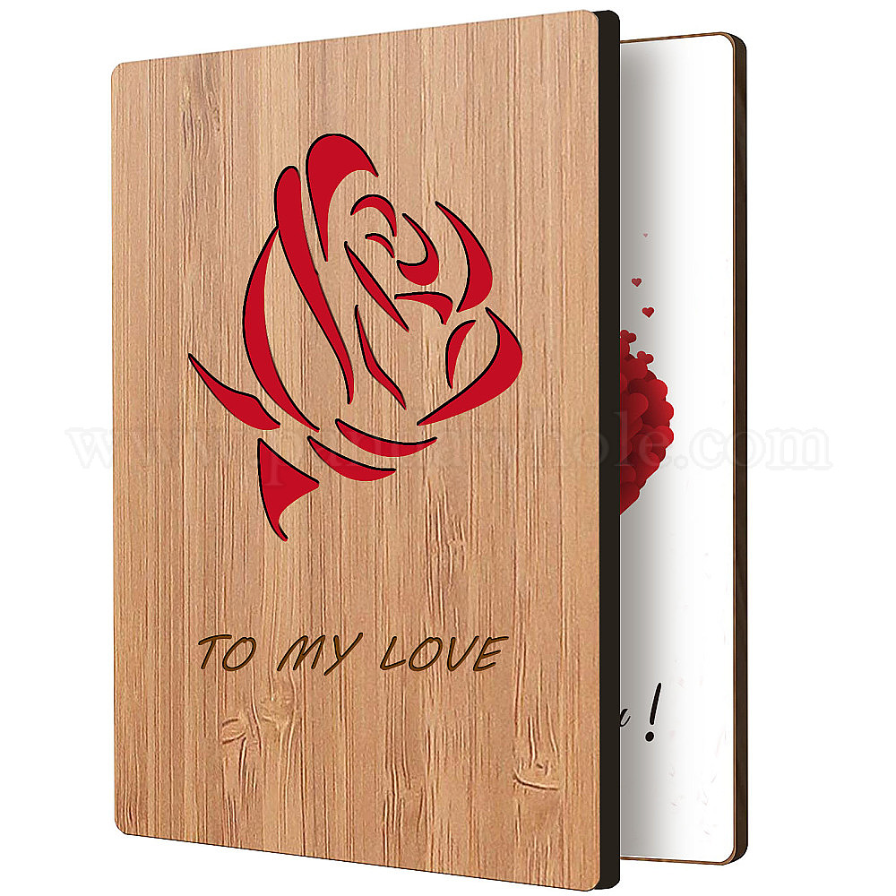 • Другие Бамбуковая открытка и бумажный конверт с бантом, прямоугольник с полым узором, день рождения тематический узор, 150~173x110~124x7 мм, 2 шт / комплект