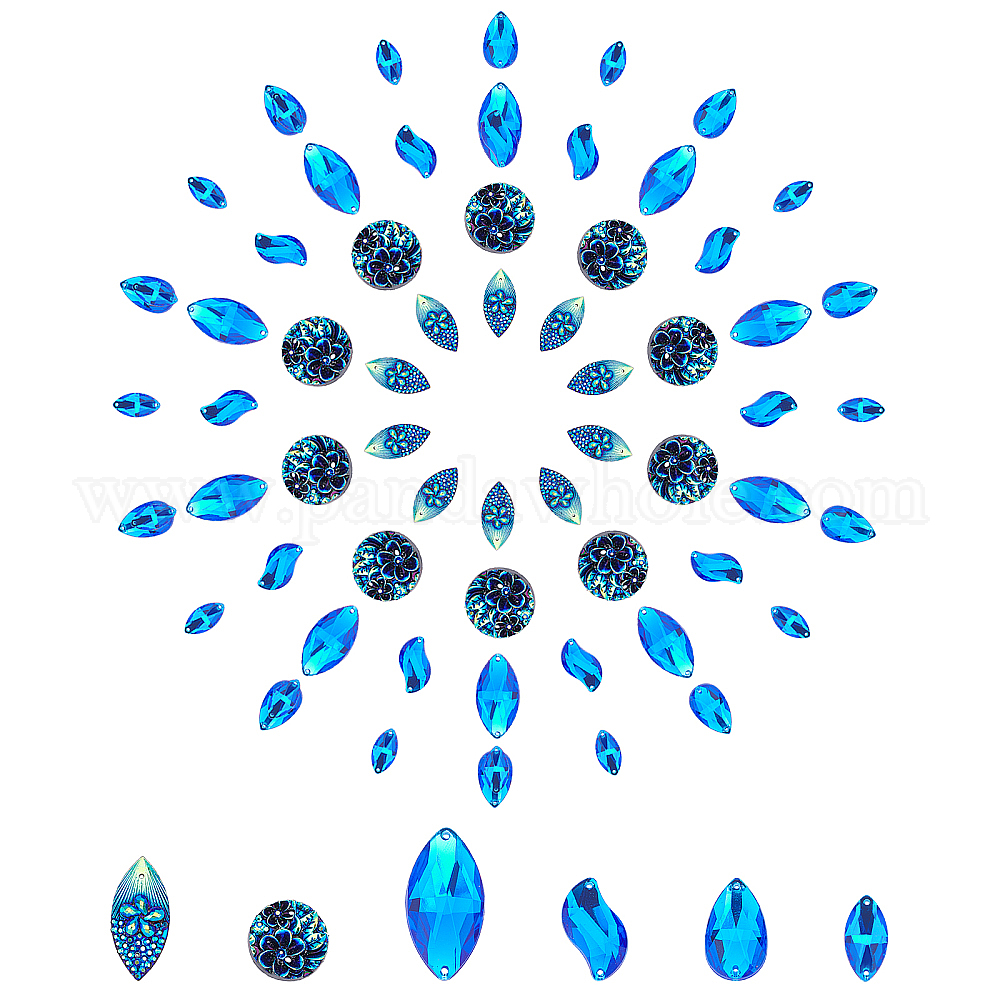 60шт 6 стиль пришивать стразами, горный хрусталь из смолы / тайваньский акриловый горный хрусталь, два отверстия, аксессуары для одежды, разнообразные