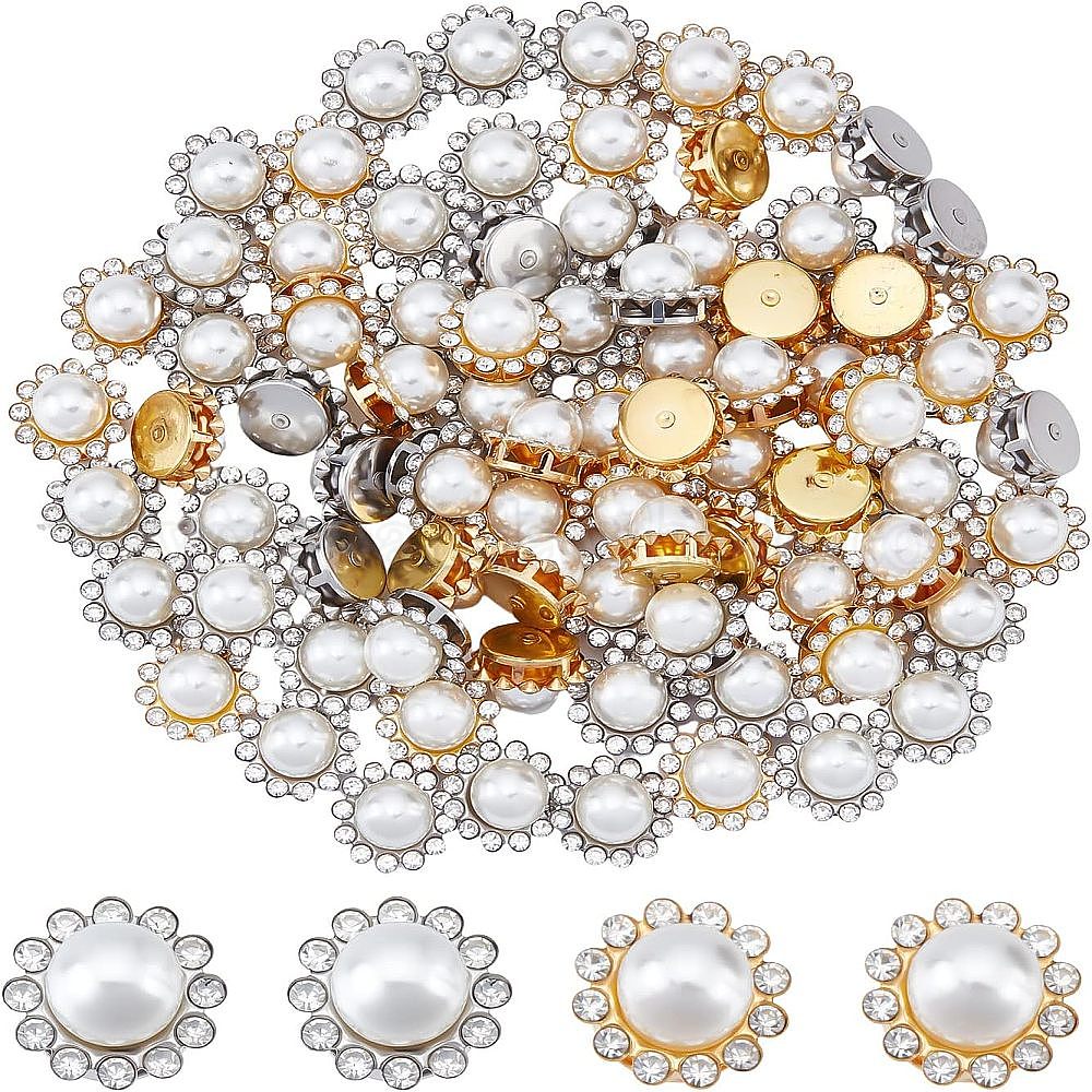 80 шт 2 цвета пришить горный хрусталь, смолы стразами, с железными зубцами и пластиковыми бусинами, имитирующими жемчуг, аксессуары для одежды, граненые, цветок