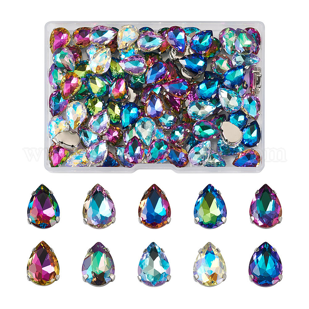 100 шт 10 цвета пришить горный хрусталь, граненый стеклянный горный хрусталь, многожильных ссылки, с настройками сплава платинового тона, слеза