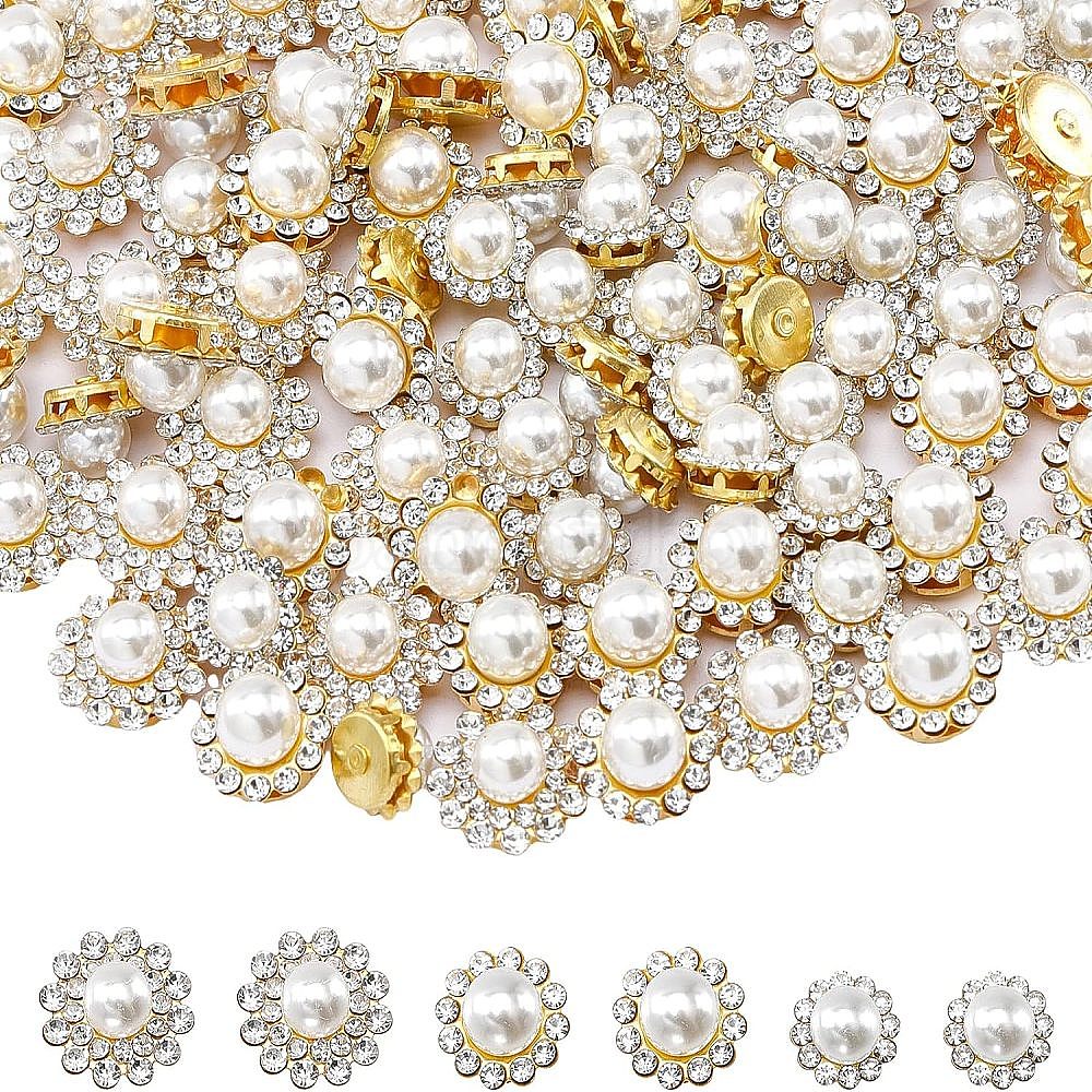 150шт 3 стиль цветок пришитый стразы, пластиковые стразы, с имитацией жемчуга и золотым железом