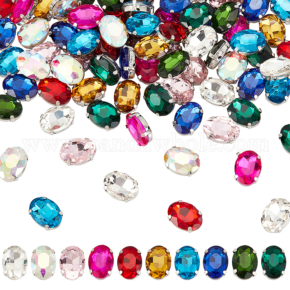 100 шт 10 цвета пришить горный хрусталь, многожильных ссылки, стекло горный хрусталь, с настройками латуни, аксессуары для одежды, граненые, овальные