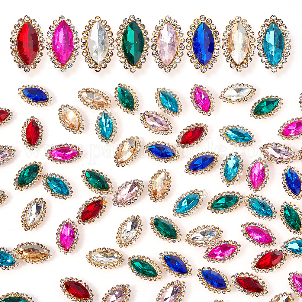 Ahademaker 80шт. 8 цвета шить на стразах, прозрачное стекло горный хрусталь, с настройками железного зубца, граненые, лошадиный глаз