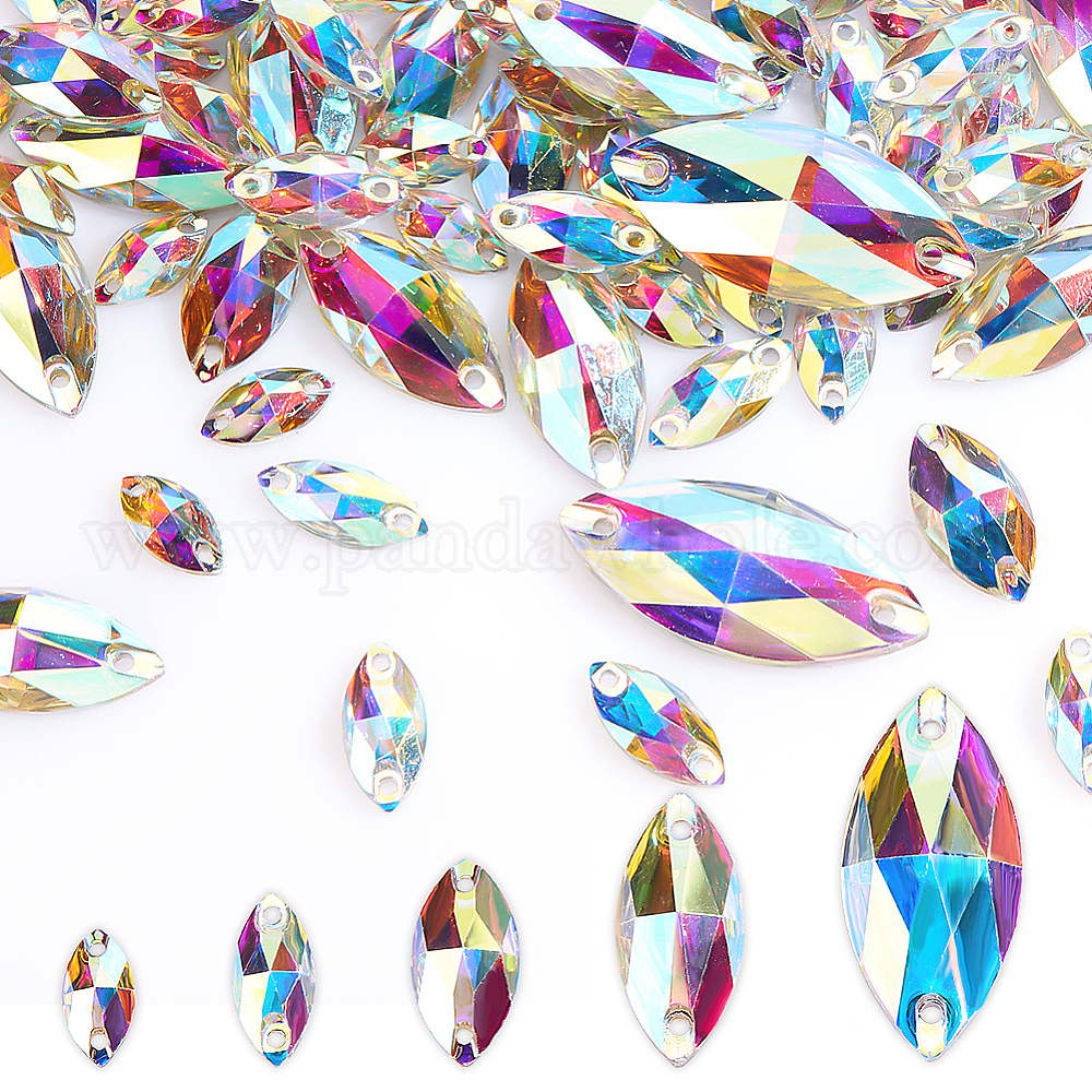 • Хрусталь AB Ahademaker 75шт. конский глаз пришить стразы, смолы стразами, 2-отверстия ссылки, плоская задняя и задняя, аксессуары для одежды, хрусталь AB, 12~32x6~17x3 мм, отверстие : 1.2 мм, 5 стиль / коробка