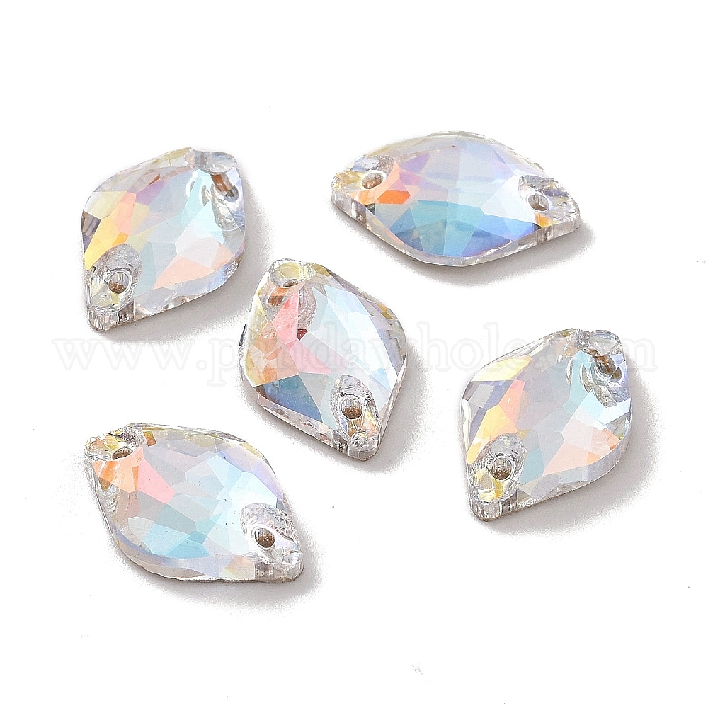 Пришить стразами в форме лимона, k 5 стеклянный страз, 2-отверстие ссылка, плоская спинка с покрытием, швейные украшения