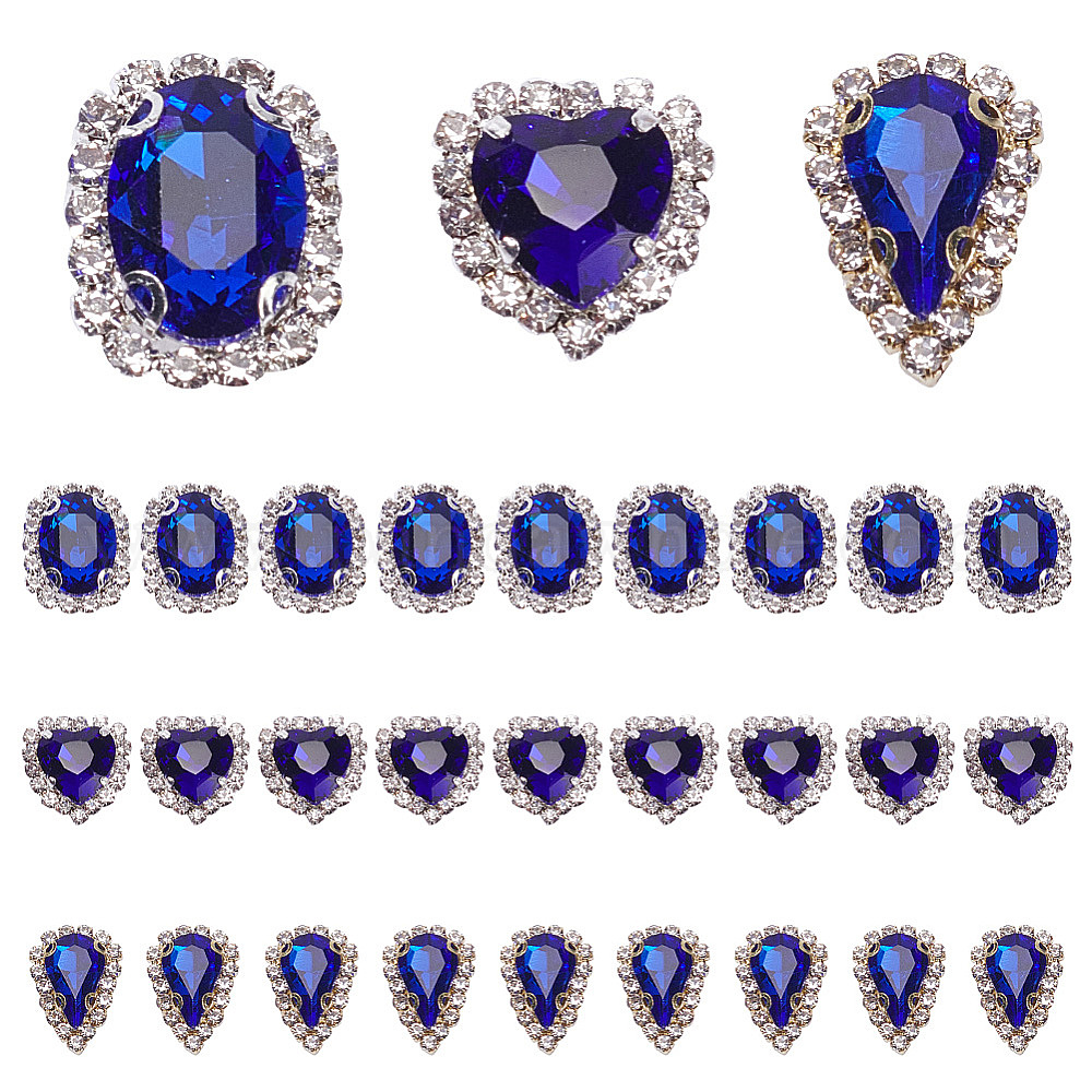 30шт 3 стиль пришивать стразами, стекло горный хрусталь, с настройками из сплава, овал, сердце и слеза