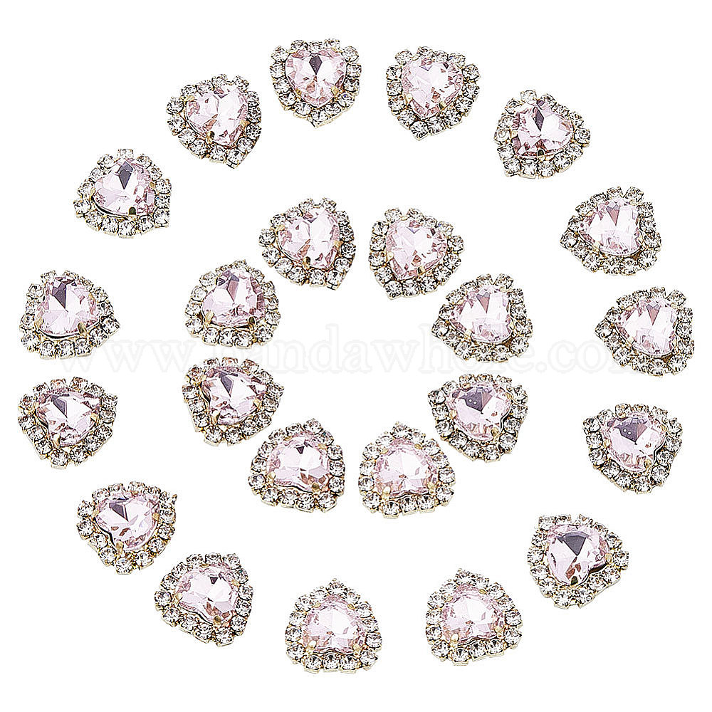 30Шитье со стразами, многожильных ссылки, стекло горный хрусталь, с выводами светло-золотого сплава, аксессуары для одежды, сердце