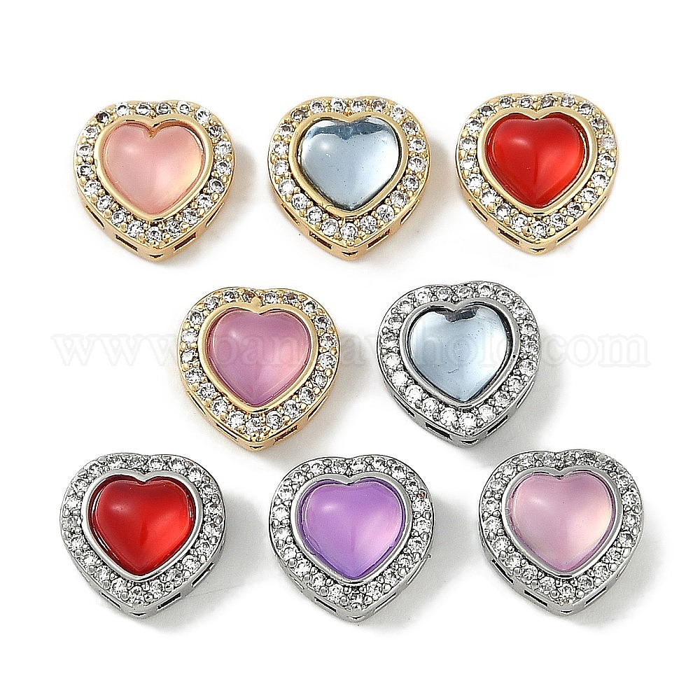 • Бледно-Розовый Смоляные пришивные стразы, с латунными микро проложить кубических выводы циркония, сердце, платина, розовый жемчуг, 9.5x9.5x6.5 мм, отверстие : 0.6 мм