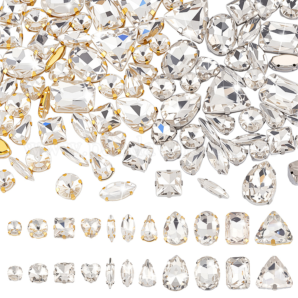 • (52) Непрозрачная лаванда 2 сумки 2 цветное стекло пришитые стразы, Сплав многожильных ссылки, разнообразные, разноцветные, 8~18x7~19x5~8 мм, 50 шт / пакет, 1 сумки / цвет