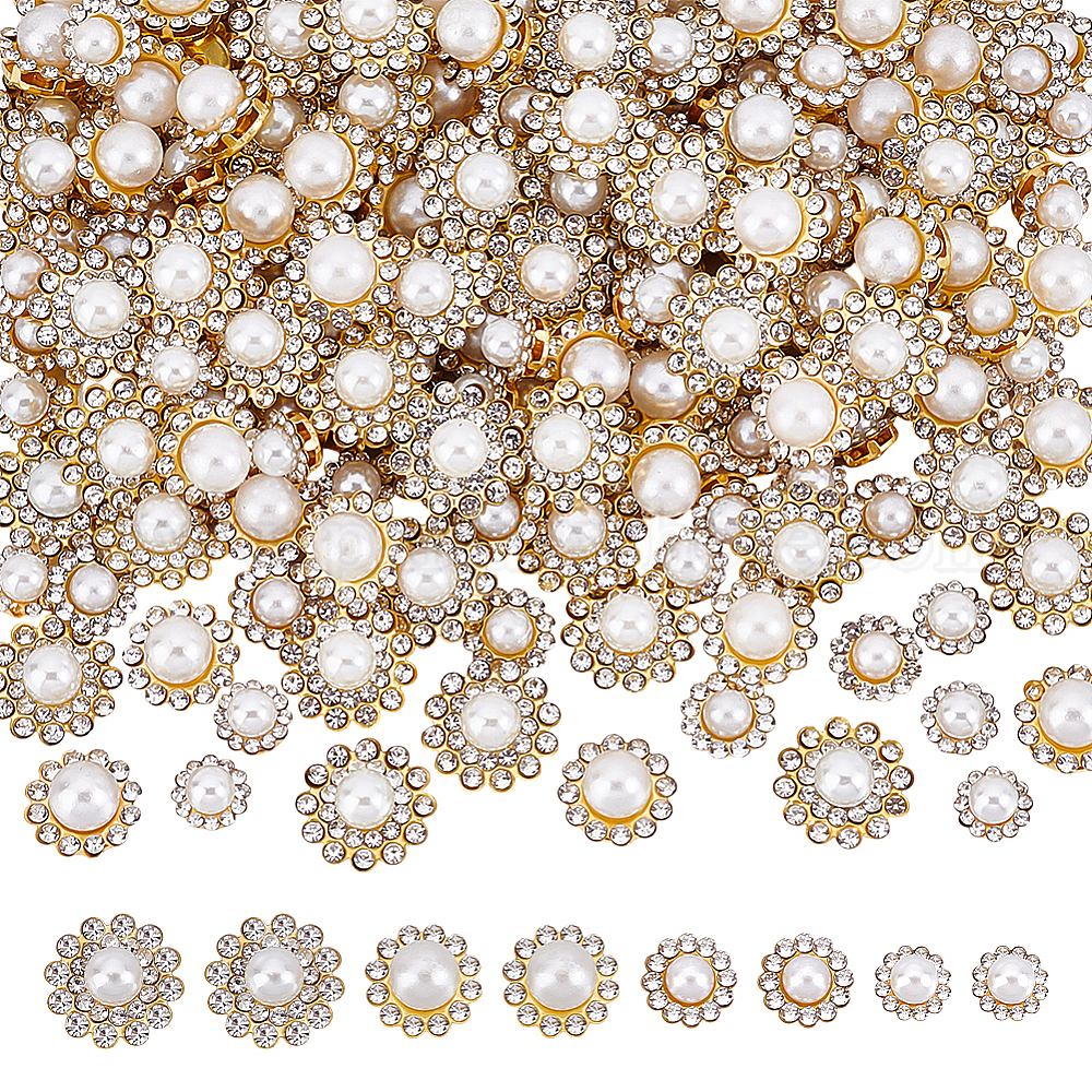 200шт 4 стили пришить стразы, смолы стразами, с железными зубцами и пластиковыми бусинами, имитирующими жемчуг, аксессуары для одежды, граненые, цветок