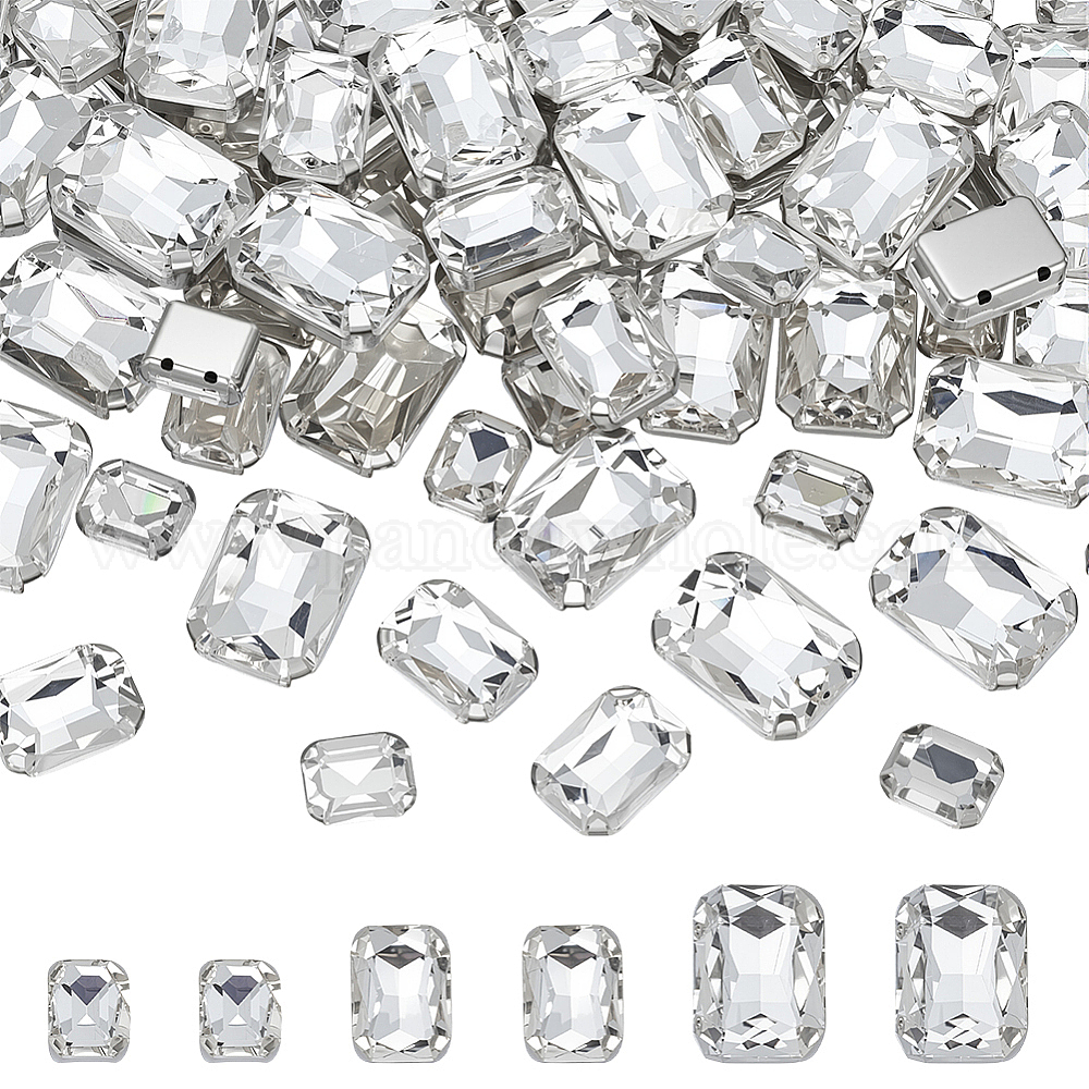 75Шитье со стразами, многожильных ссылки, стекло горный хрусталь, с латунными зубцами в платиновых тонах, прямоугольные