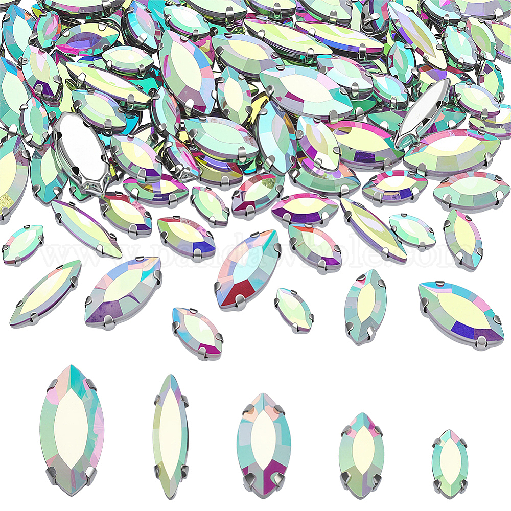 • Хрусталь AB 120Шитье со стразами, многожильных ссылки, стекло горный хрусталь, с латунными зубцами в платиновых тонах, лошадиный глаз , хрусталь AB, 8~15x4~7x3.5~5 мм, отверстие : 0.8~1 мм