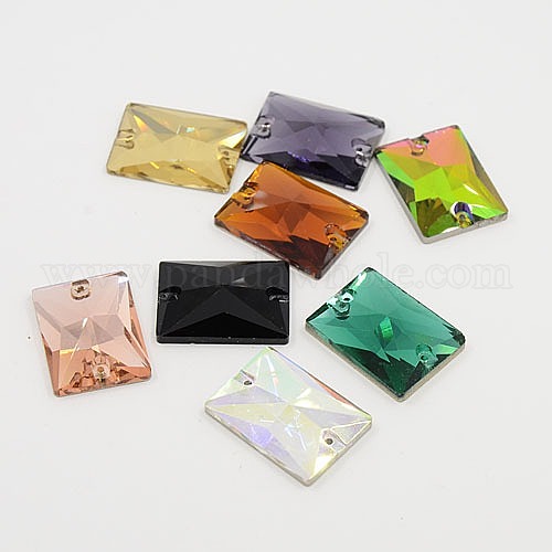 Шить на горный хрусталь, стекло горный хрусталь, два отверстия, аксессуары для одежды, прямоугольные, 18x25x7 мм, отверстие: 1 мм