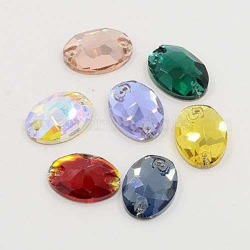 Шить на горный хрусталь, стекло горный хрусталь, два отверстия, аксессуары для одежды, граненые, овальные, 13x18x5 мм, отверстие : 1 мм