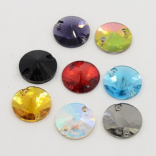 Шить на горный хрусталь, стекло горный хрусталь, два отверстия, аксессуары для одежды, граненые, полукруглый, 18x6 мм, отверстие : 1 мм (00DS6Z)