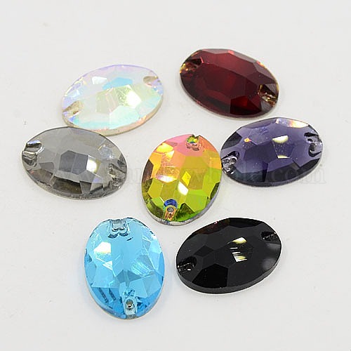 Шить на горный хрусталь, стекло горный хрусталь, два отверстия, аксессуары для одежды, граненые, овальные, 17x24x6 мм, отверстие : 1 мм (00DS7E)