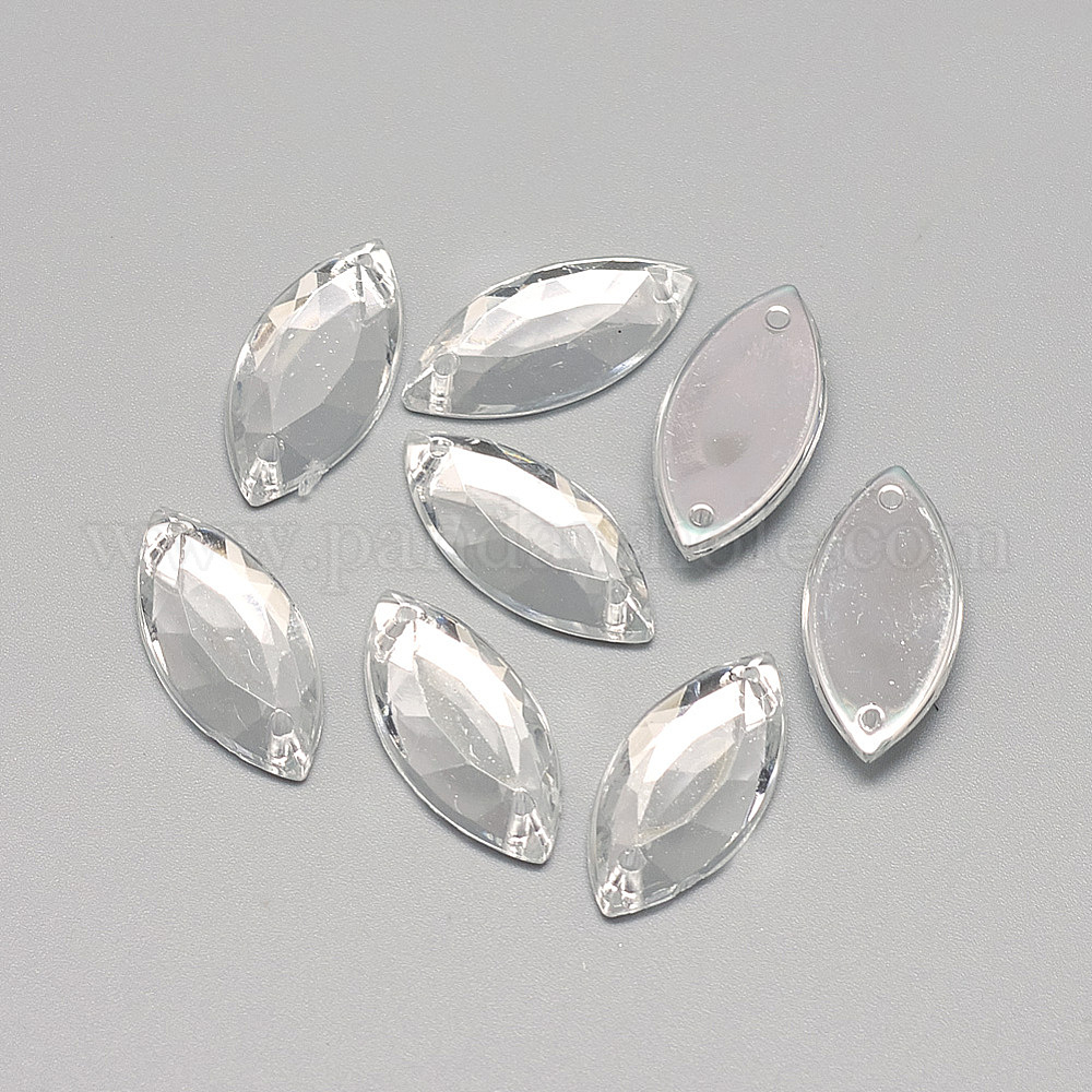Шить на горный хрусталь, прозрачный акриловый горный хрусталь, два отверстия, аксессуары для одежды, граненые, лошадиный глаз (00N642)