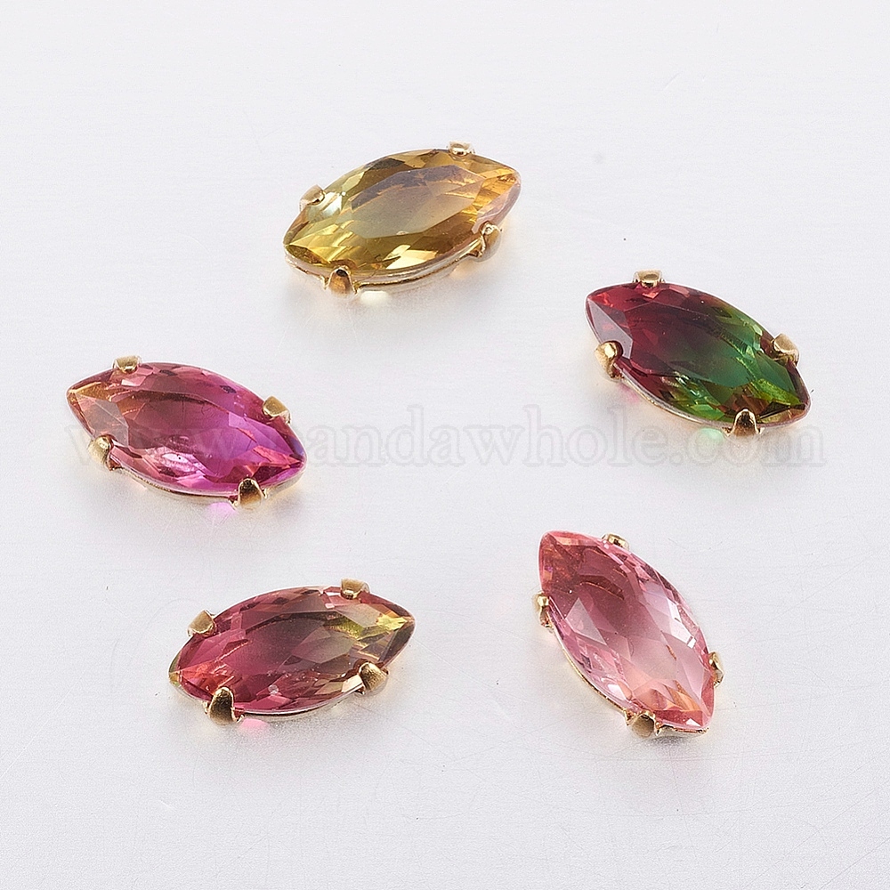 Шить на горный хрусталь, стекло горный хрусталь, с золотыми тонами латунных зубьев, аксессуары для одежды, граненые, лошадиный глаз