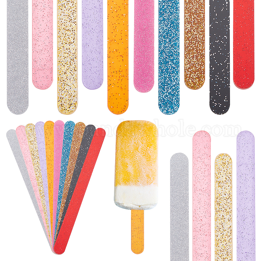 30шт 10цвета многоразовые акриловые палочки для торта с пайетками, палочки для мороженого для форм для мороженого своими руками, прямоугольные (029GQA)