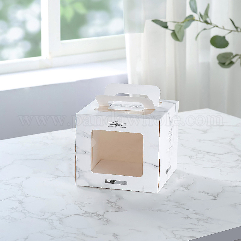 Складная коробка для торта из крафт-бумаги, контейнер для выпечки торта, прямоугольник с прозрачным окном и ручкой
